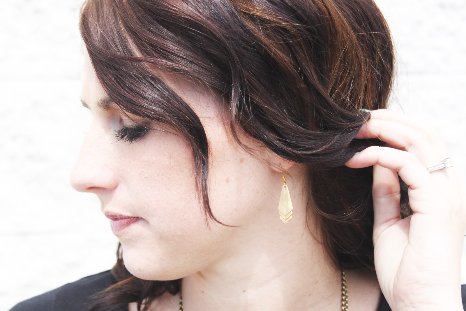 Erin and Racheal sent me these darling chevron earrings and I couldn’t wait to wear them! I love how they are dangle earrings, but not so big that they weigh down your ear. I also love the texture they have to them and the gold color! I paired them with this pleated skirt for a girly look, but they will go with absolutely everything!