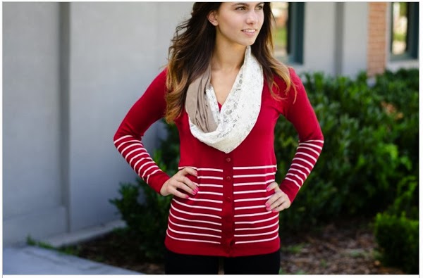 Stripes are a must this season. I love that the bottom is striped and not the whole cardigan. It is darling!! You can get this for only $17.99 here! What a deal!!