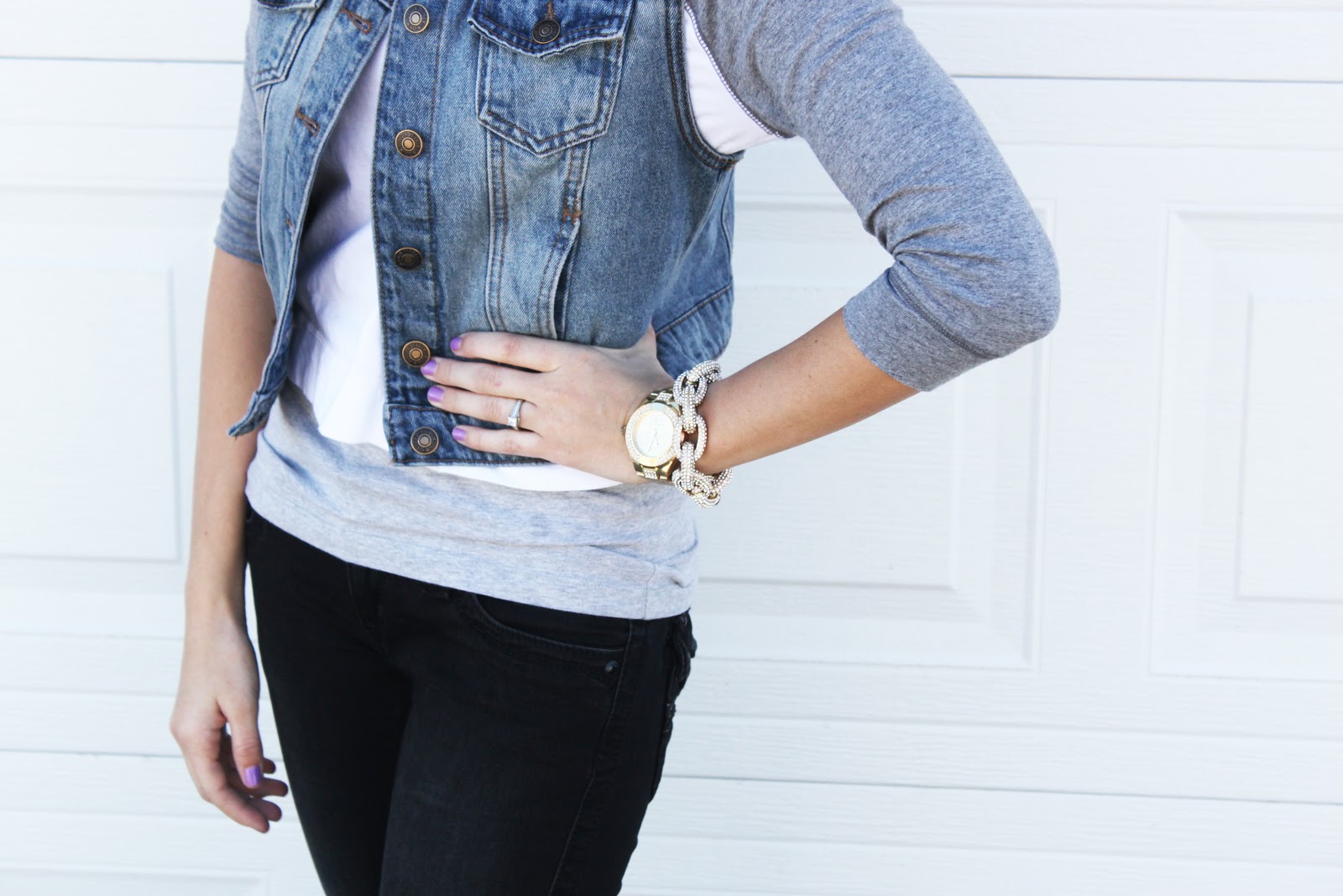 I am absolutely loving this sunny weather! The days that the sunshines through my windows I swear I get so much more done! I love this time of year to open the windows and enjoy the fresh air. Today’s outfit was causal, I love denim vests and that you can throw them over anything and add a new look! Baseball t’s are so fun and comfy, they are one of my new favorite shirts, I will definitely be purchasing some more of them so if you see any cute ones please let me know where! I am working on a hair tutorial so look for that coming soon!
