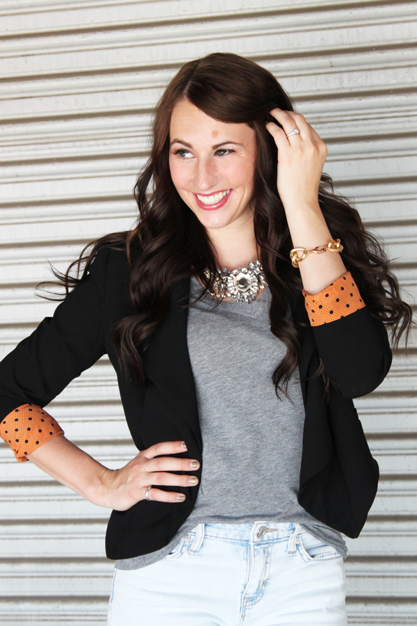 That has to be the cutest black blazer, the dots on the sleeves makes it so unique! The necklace is fabulous!
