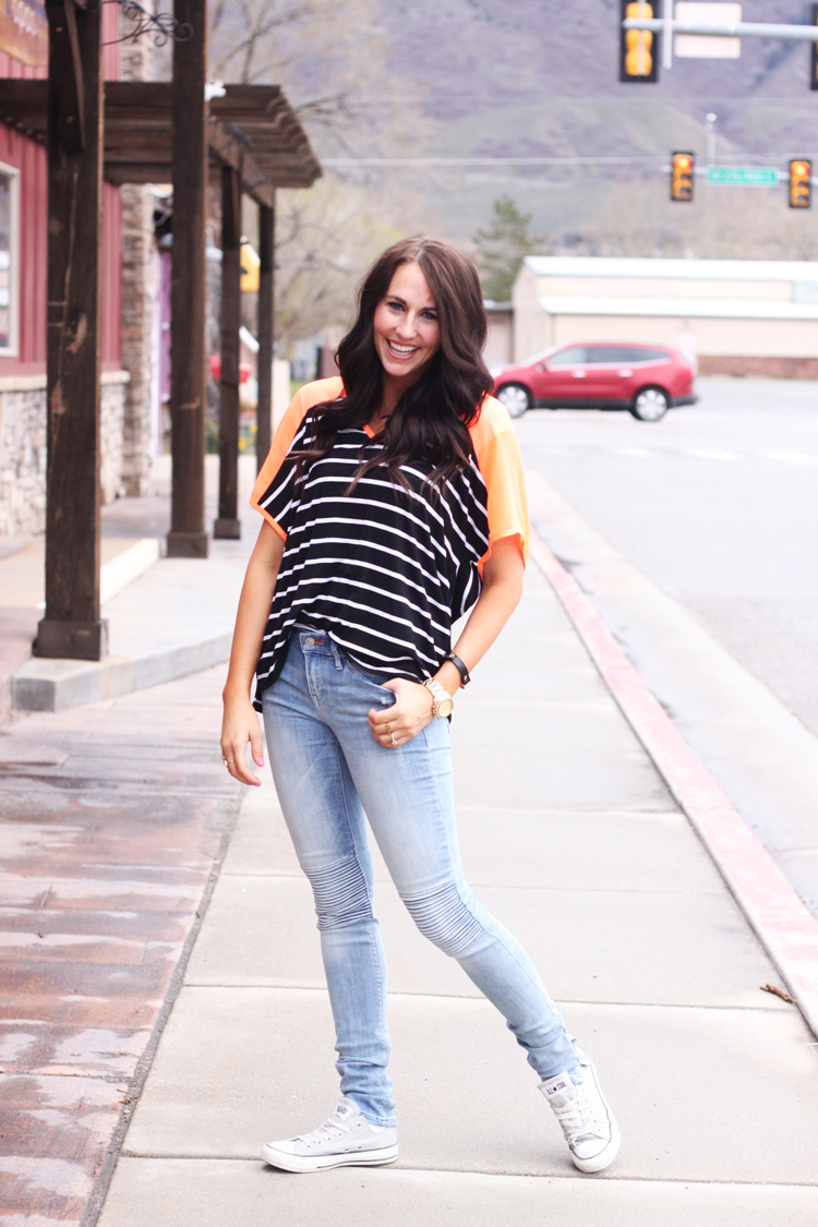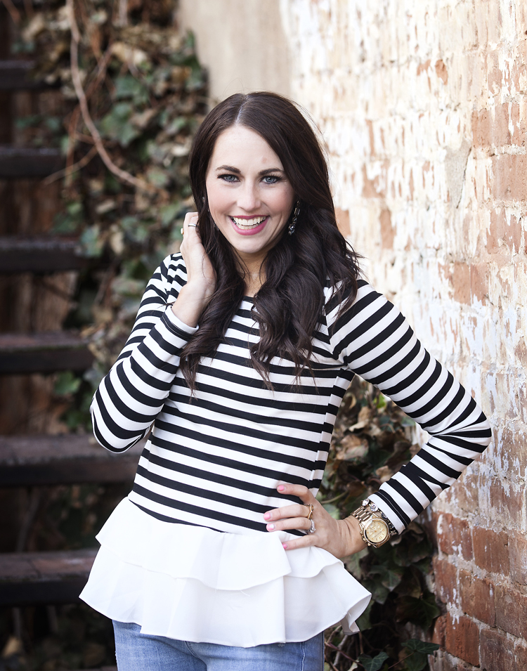 I know, I know more stripes. But I just love them. I love that the ruffles add some fun to this top. It makes it super flattering. Seriously ... Read More