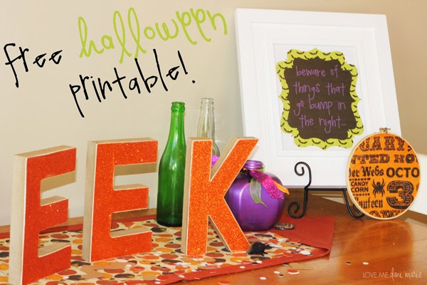 Umm how cute are those EEK words!? I so wish I could take all the credit for them, but all the amazing credit goes to darling ALT 3! She has the most darling halloween/holiday crafts! How cute is the subway art hoop by the printable also?! That is from her shop too. You need to head over to her Etsy site like yesterday and snag up some of her darling decor!