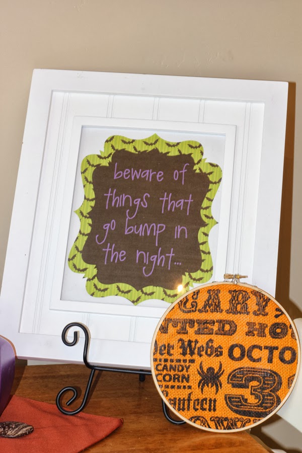 Umm how cute are those EEK words!? I so wish I could take all the credit for them, but all the amazing credit goes to darling ALT 3! She has the most darling halloween/holiday crafts! How cute is the subway art hoop by the printable also?! That is from her shop too. You need to head over to her Etsy site like yesterday and snag up some of her darling decor!