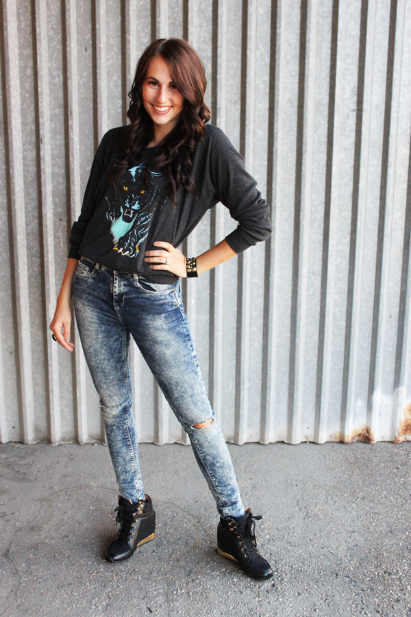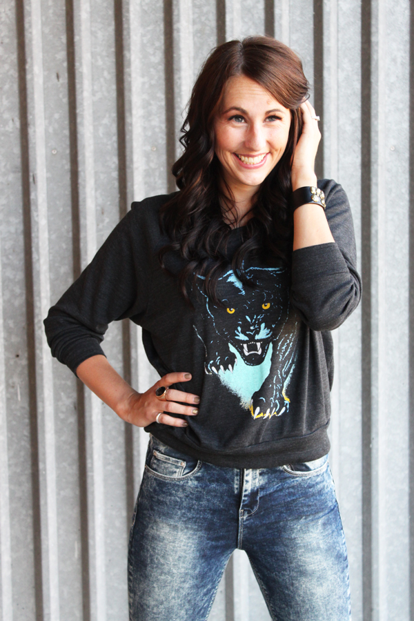 I found this perfect sweatshirt for the transition from summer to fall. It is light weight and so comfy. Plus how awesome is the jaguar!? If you love tees with fun prints on them make sure to check out Skip ‘N Whistle!