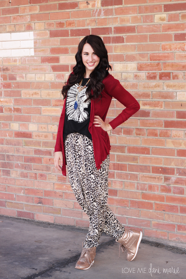 When we were taking pictures of this outfit, Zach told me I had to title it Hammer Time. I don’t think anything would have fit as well. These pants are seriously like p.j.’s! If you don’t own a pair then trust me you need them! I love that I could pair them with a baggy graphic tee and a soft cardigan and feel like I was in sweats all day!
