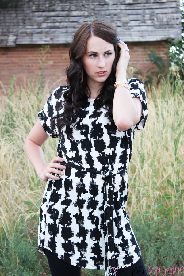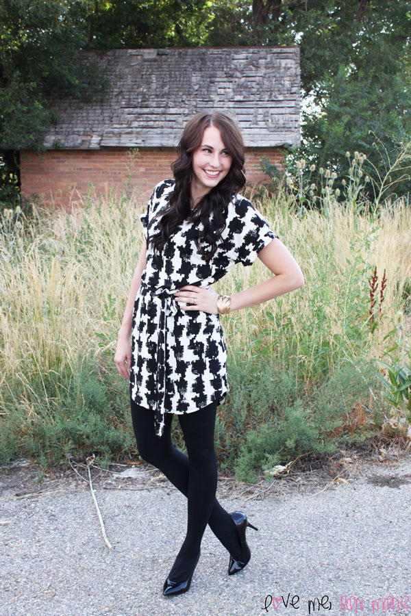 Hi! I hope you are all having a great week! It’s almost the weekend wahoo! I have been looking for something cute that is houndstooth and this dress is absolutely perfect! I love that it could be worn with tights like I wore it below, or with leather leggings as a tunic. Max & Olivia’s has the cutest stuff! If you haven’t checked them out make sure you do. You won’t regret it. I love that this outfit could be worn with heels and be dressy, or with flats and be cute for running errands. I love outfits that can be changed easily from dressy to casual. What is your favorite outfit or piece that you can switch up easily?