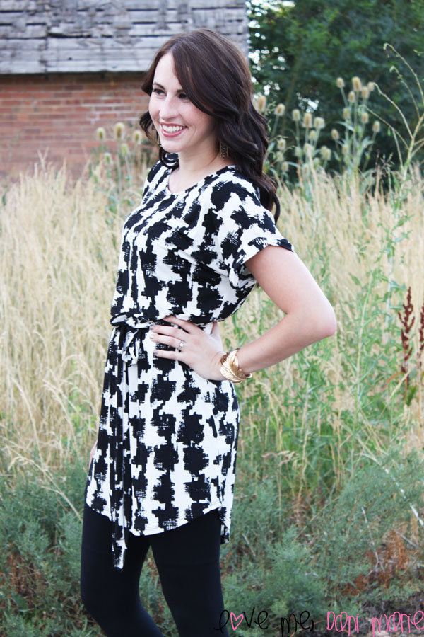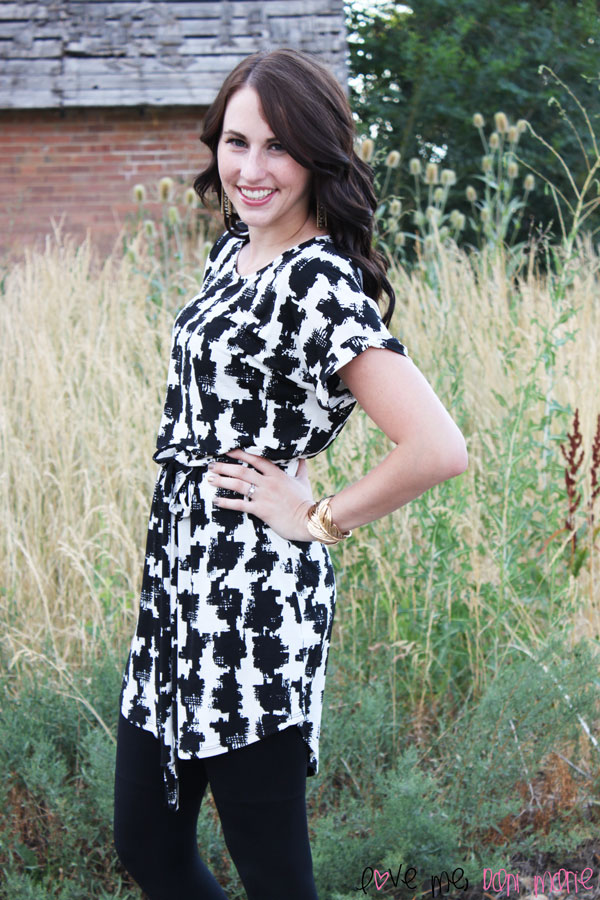 Hi! I hope you are all having a great week! It’s almost the weekend wahoo! I have been looking for something cute that is houndstooth and this dress is absolutely perfect! I love that it could be worn with tights like I wore it below, or with leather leggings as a tunic. Max & Olivia’s has the cutest stuff! If you haven’t checked them out make sure you do. You won’t regret it. I love that this outfit could be worn with heels and be dressy, or with flats and be cute for running errands. I love outfits that can be changed easily from dressy to casual. What is your favorite outfit or piece that you can switch up easily?