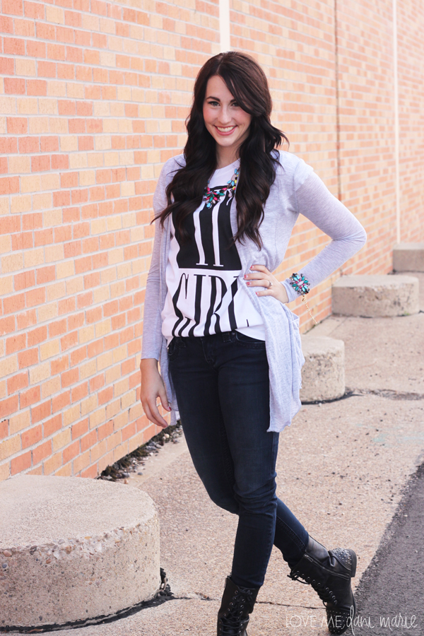 I love this outfit. It is definitely one of my favorites! These amazing light weight cardigans will be on Jane today for an amazing deal!! They are so perfect for this time of year. Oh and did I mention how soft they are!? Umm… Pretty heavenly! You will want to go snag one quick, because they will sell out fast! I paired it with this fun IT GIRL baggy tee and some bright accessories! It is the perfect look for running errands. It is comfy but still trendy and cute. My motto in getting dressed!