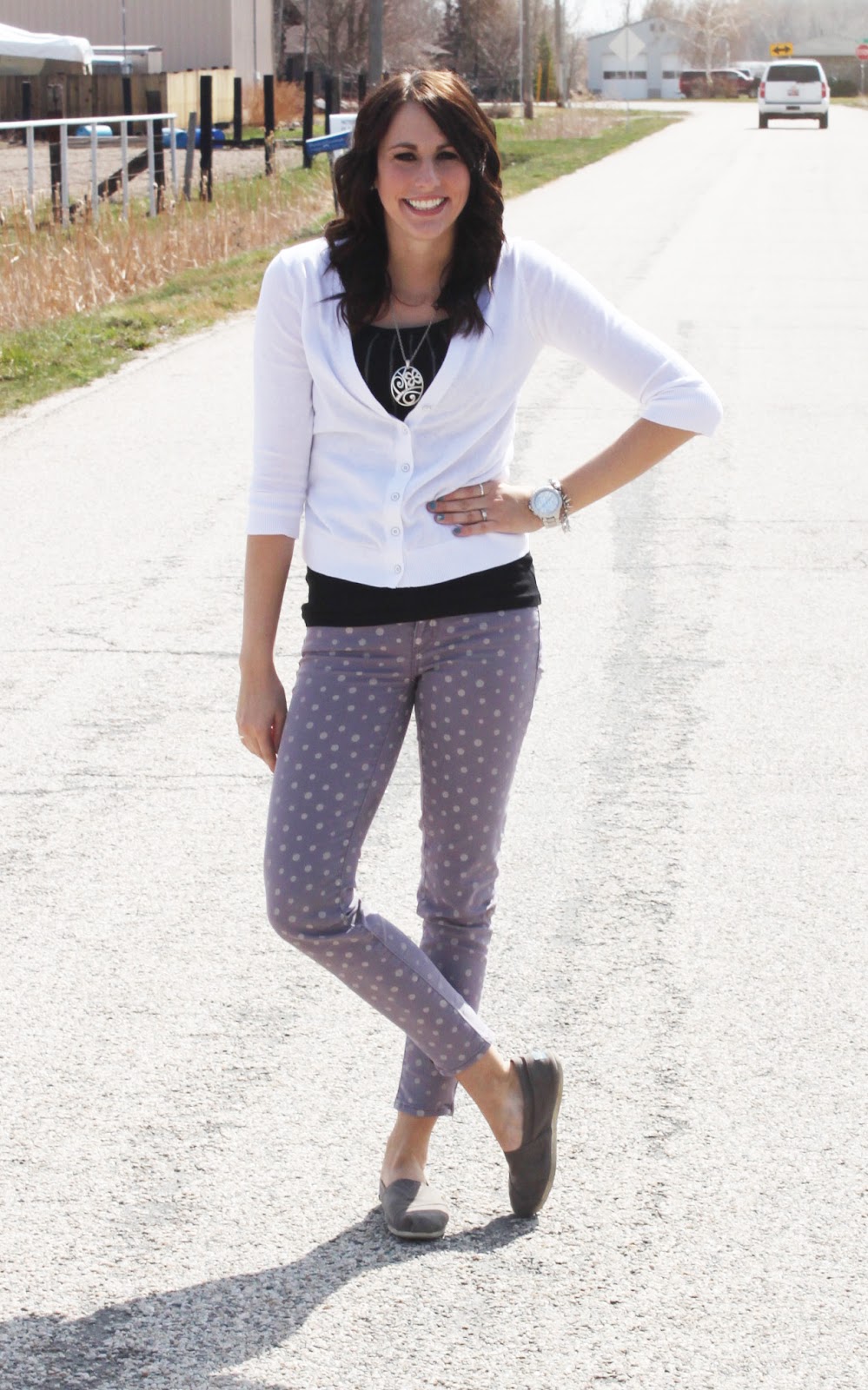 I’m so sad that my wonderful, lazy spring break is almost over! I wish it could just last forever… If the sunshine stays I guess that will be okay!! I am so in love with polka dots this season! I love the cheerfulness they can bring to any outfit! There are so many fun ways to incorporate them into your wardrobe, from sweaters to pants! I love these purple ones! They are like double the happiness! I also curled my hair differently in this post and think its a fun different change. These curls are a lot more messy than the 3 day curls I did a tutorial on here. Well, I hope you are all enjoying the sunshine! I am hoping to finish my fun secret project this weekend and have a tutorial up for you next week! Have a fantastic fun weekend!