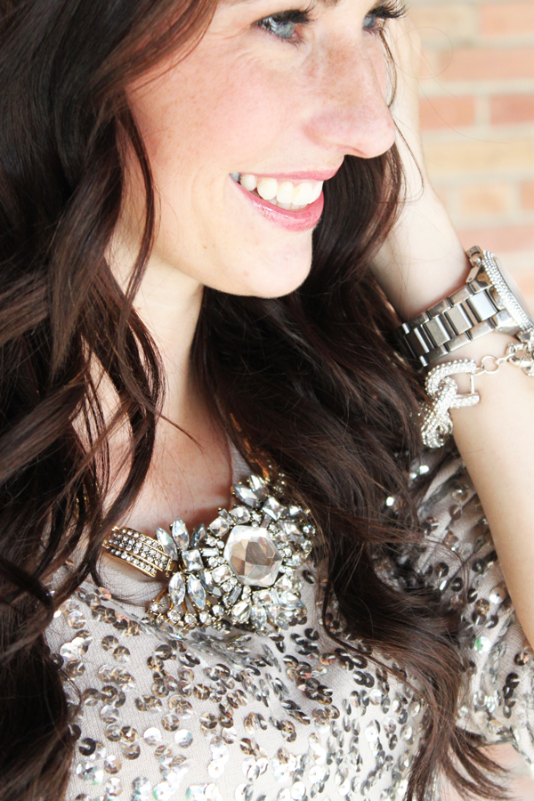 Look at you! With the sequins and that fabulous statement necklace you are ready for a party!