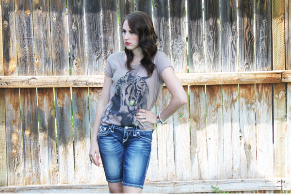 Love a good shirt with a tiger or leopard print. Cute shorts/capri’s. Love the shoes. When can we go shopping? *when I have funds huh?* LOL