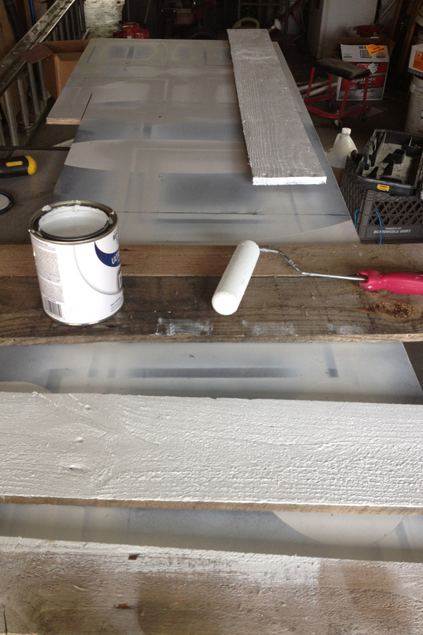 Once the boards were off, I painted all the boards white. I used Rustoleum (satin white) that I picked up at Home Depot.