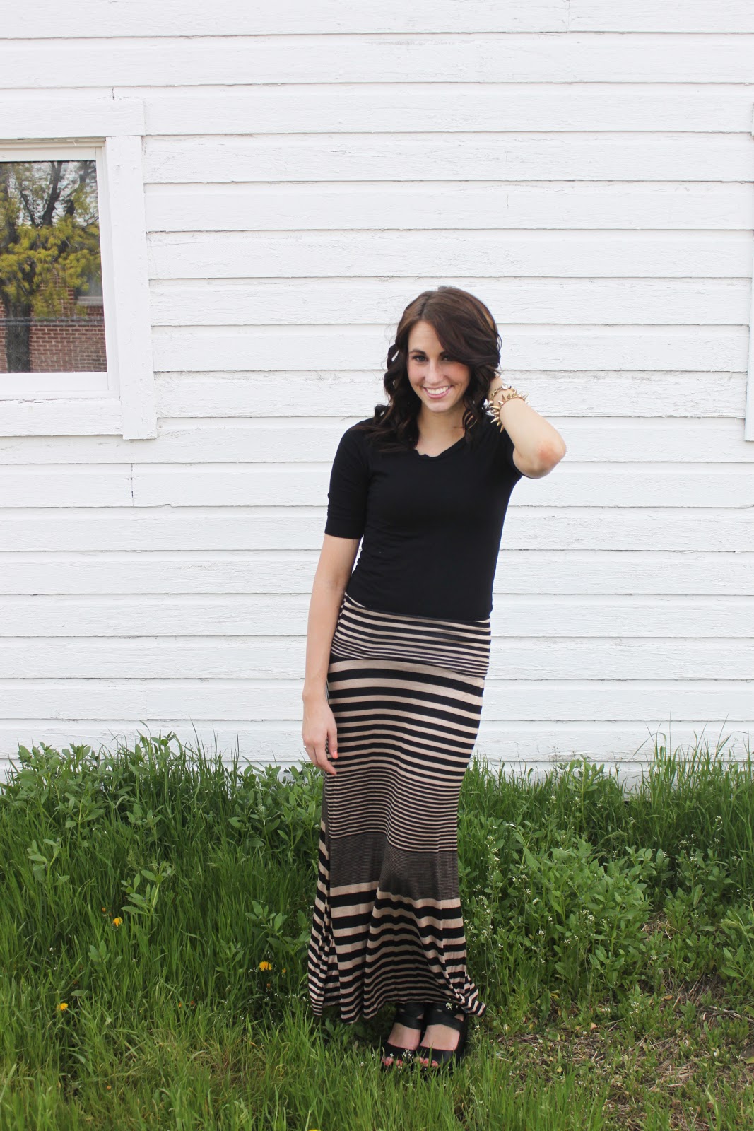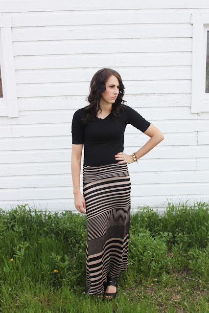 I love a casual outfit to just throw on to run errands or go out to lunch! Patterned maxi skirts are just that for me! You can just put on a basic tee and necklace (which I forgot to put on!) and you have an easy outfit!