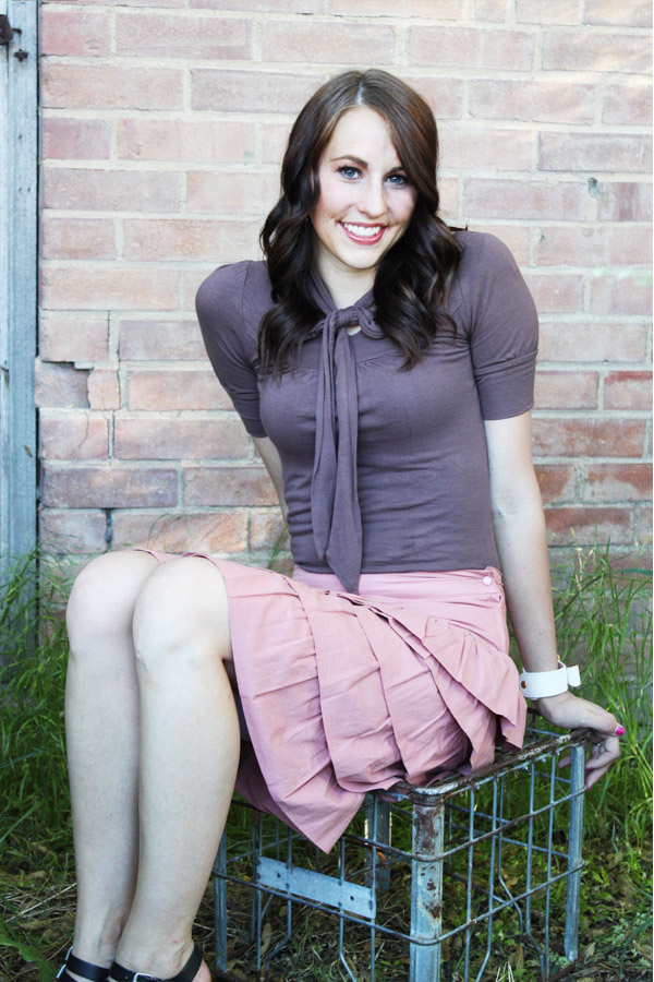 This skirt I have had for awhile and its one of my favorites. I love the girly feel it has to it. I paired it with this basic brown top with the tie. I love this top because not much accessorizing is necessary, just a couple bracelets and some earrings and you are set!