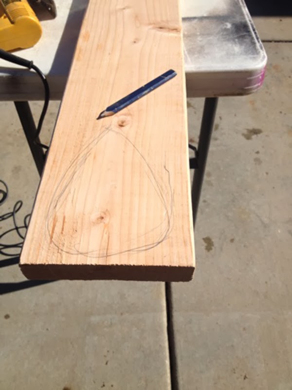 After you have the 2″x’s cut and sanded, trace your candy corn on the backside of your beadboard, then cut them out using your jigsaw.